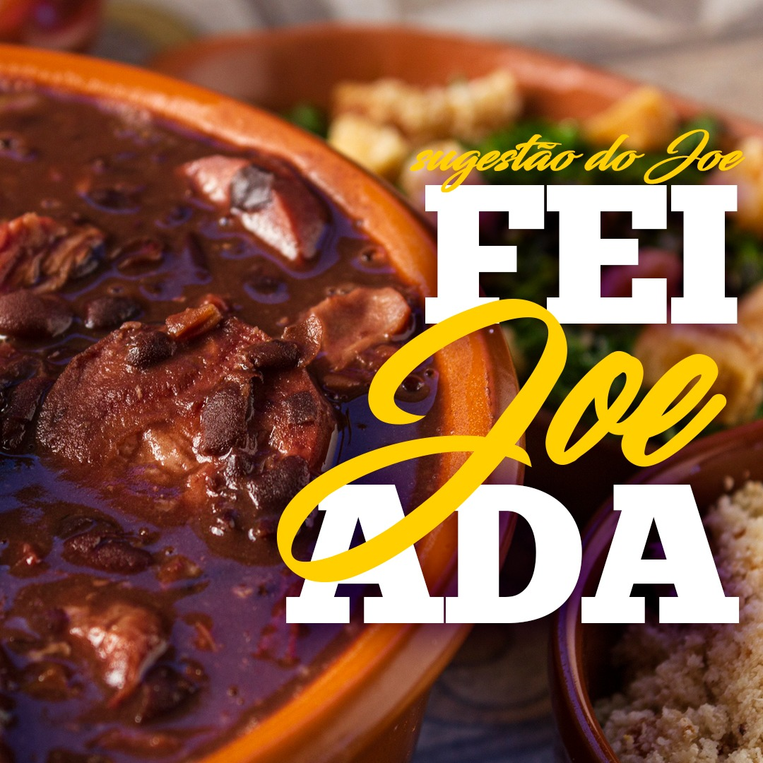 A lendária feijoada magra do Joe servida em sistema refil: você repete o quanto quiser. Vem com arroz, farofa, couve e, é claro, o nosso crocantíssimo JOERRESMO!